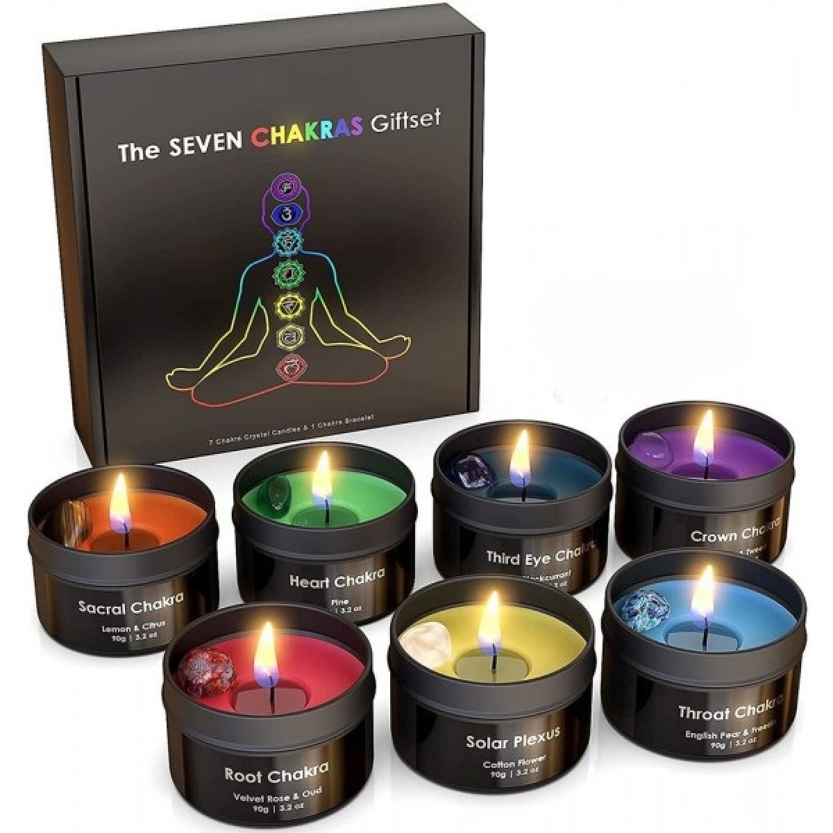 7 Chakras crystal candle gift set