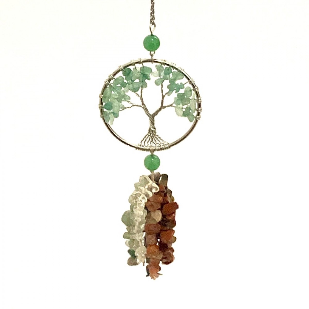 All our hanging tree of life sun catchers are hand made using natural stones .
