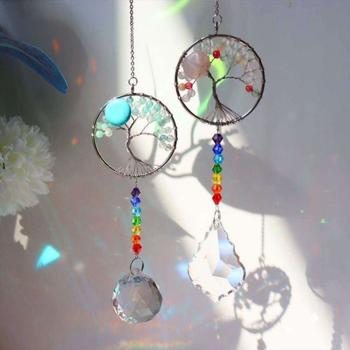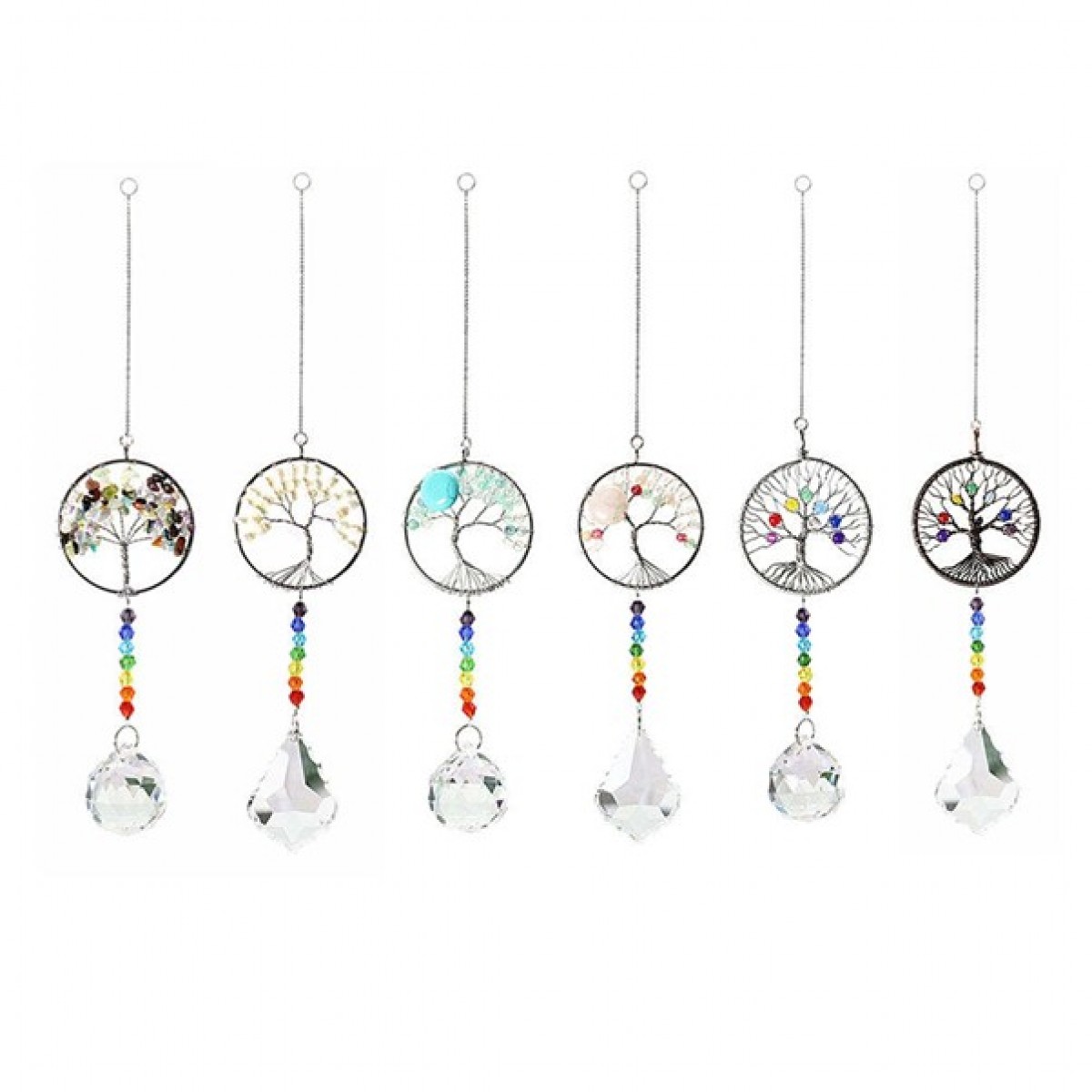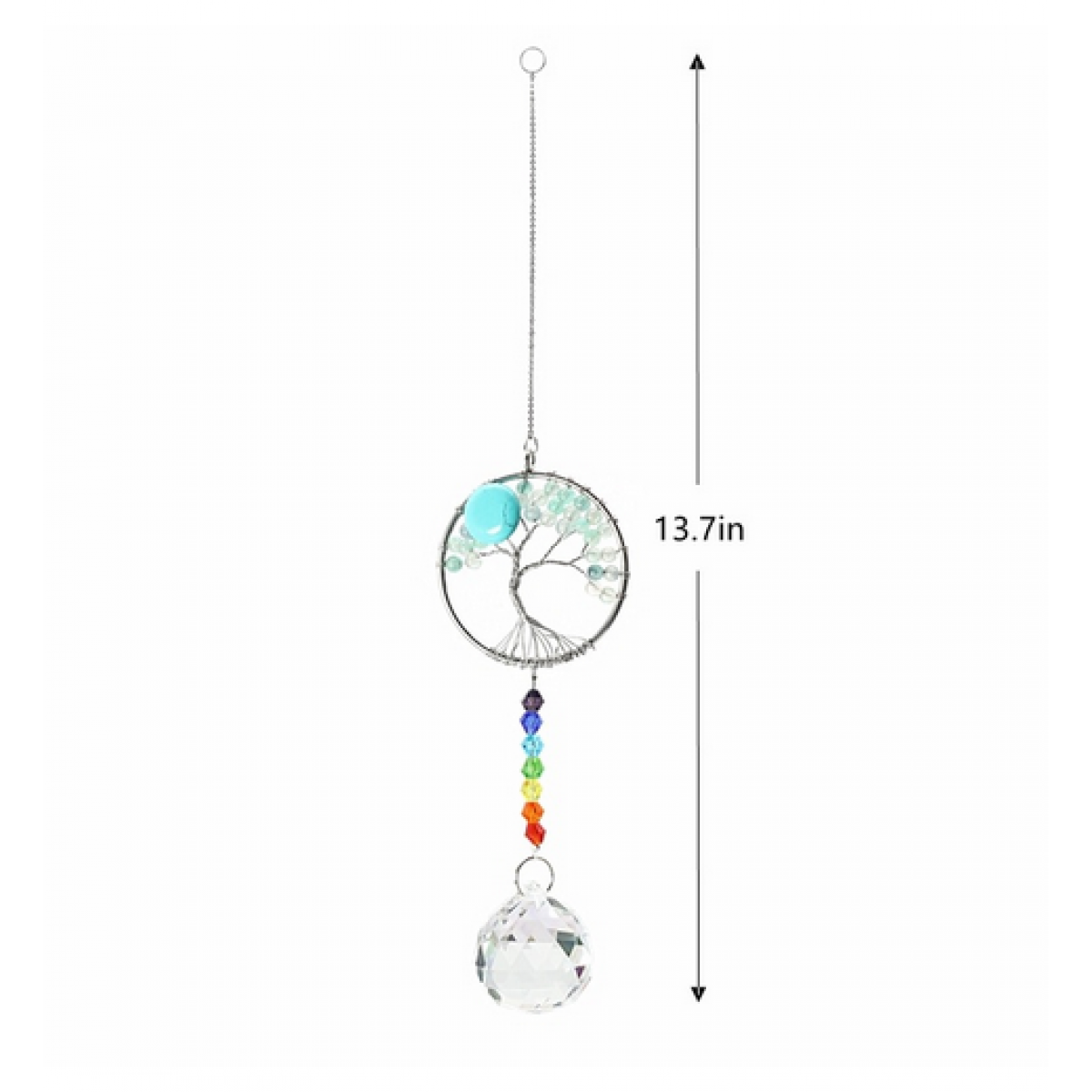 All our tree of life with chakra strings hanging ornaments are hand made with finest material available with stainless steel chains and all come with 30mm faceted ball.