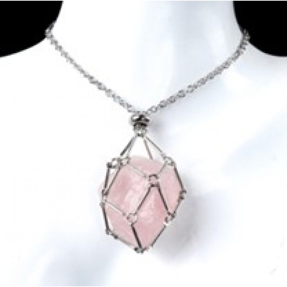 All our raw quartz in stainless steel net pendants/hanging ornaments are hand made and comes on a white display card.